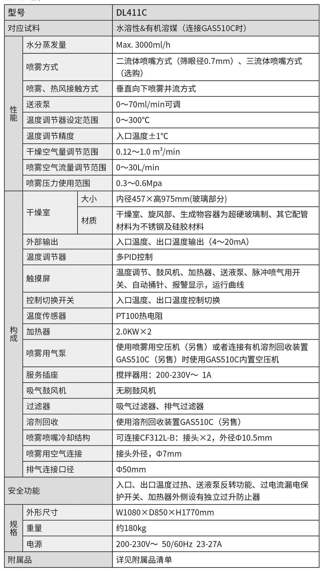 熱風入口溫度設定范圍廣,能提高處理能力和實驗的高效率化。
